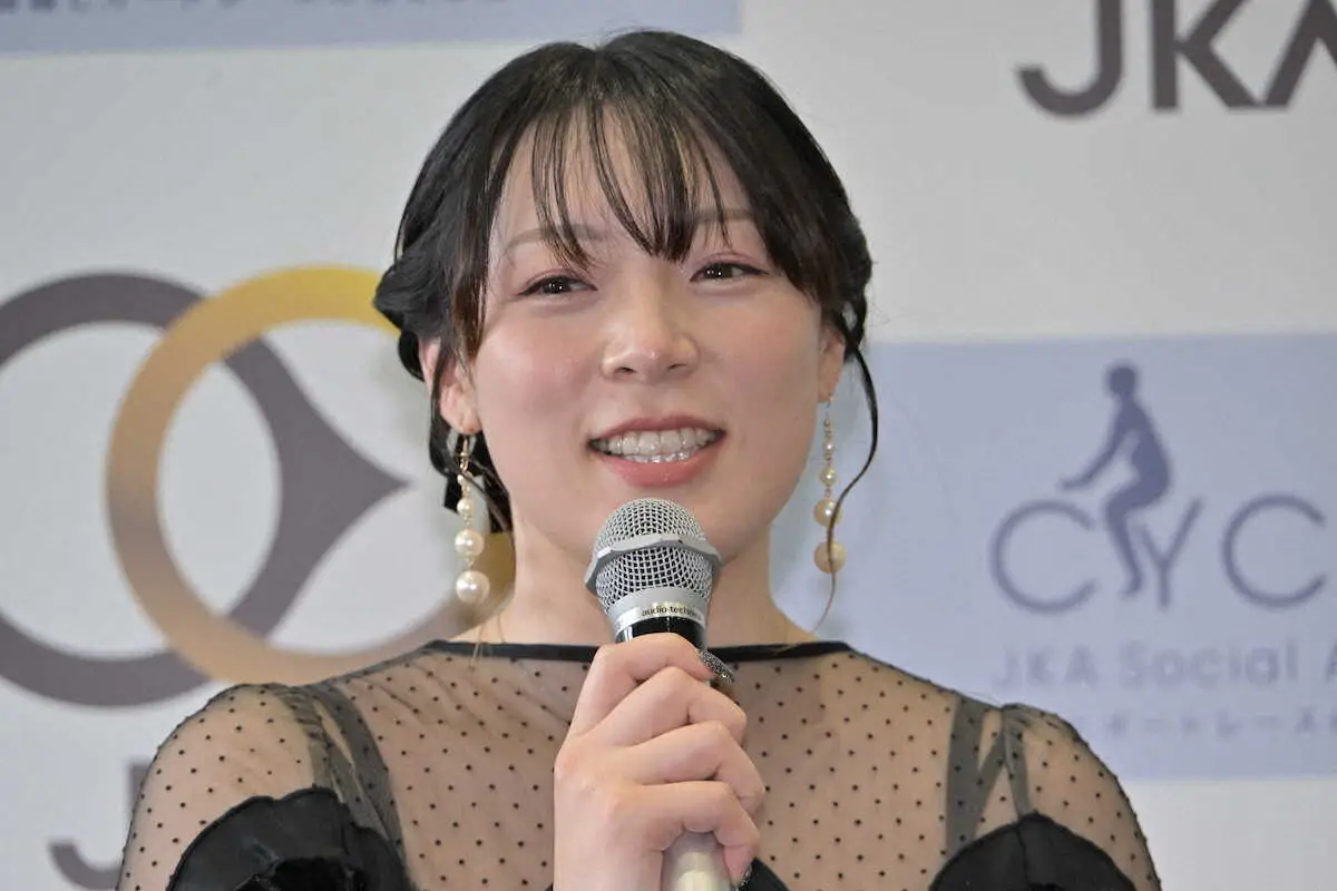 ファン投票1位を喜ぶ児玉碧衣(公財JKA提供)