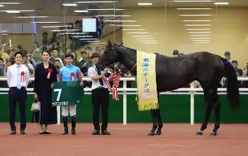 斉藤崇師も「ずっと負けていたので、このまま終わったらどうしようと。強い勝ち方ができたので、これで自信を取り戻してくれたら」と安堵(あんど)の表情。厩舎は23年ドンフランキー、24年ヤマニンウルスで前身のプロキオンSを制し、変則3連覇。ヤマニンウルス自身は小倉(1700メートル)開催だった昨年から中京に舞台を移して連覇達成だ。気持ちを切らさず走れるようワンターンの7F戦を選択し、追い切りでブリンカー効果を試した上で実戦でも装着。あらゆる手を尽くした。「リフレッシュして気持ちの面で戻っていたし、距離も良かったです。ブリンカーを着けて返し馬から気が入っていました」と胸を張った。