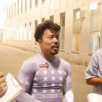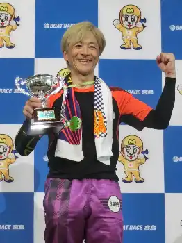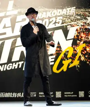 プレゼンターの佐々木蔵之介(左)と握手する横山典
