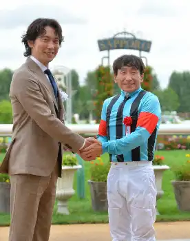 三度目の正直でつかんだ札幌記念優勝の瞬間、トップナイフの馬上で横山典が左腕を突き上げた。「なかなか勝てない中、関わる人たちが我慢して、僕の好きなようにさせてもらって、馬もそれに応えてくれた。勝てばいつもうれしいが、この馬とは若駒から長い付き合い。本当にうれしい」。自身が持つ最年長JRA重賞勝利記録を更新した57歳は、口取り撮影で馬上から飛び降りる“フライングディスマウント”。北の大地の観衆を沸かせた。