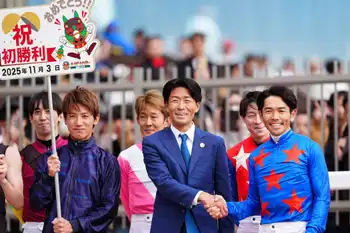 <船橋3R・石崎駿・森泰斗開業記念>セイウンユズカでレースを制し、口取りに臨む騎乗した戸崎と管理する森泰斗師(左から4人目)ら(撮影・河野 光希) Photo by スポニチ 【船橋競馬】森泰斗師が3Rで初出走初勝利 「ドラマみたいな展開」 鞍上… ギャラリーで見る この記事のフォト 2025年11月03日の画像一覧 もっと見る 2025年11月03日の画像をもっと見る