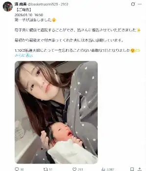 投稿では「2026.01.10 16:50 第一子が誕生しました」とし我が子を抱くショットとともに報告。「母子共に健康で退院することができ、皆さんに報告させていただきました」と伝えた。