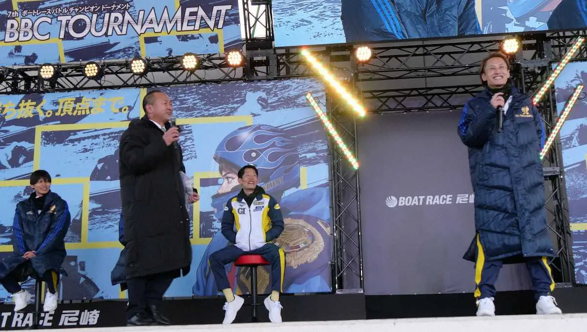 プレミアムG1「第7回ボートレースバトルチャンピオントーナメント」決勝戦が12Rで争われるボートレース尼崎で24日、決勝戦出場選手インタビューが6R発売中に行われた。