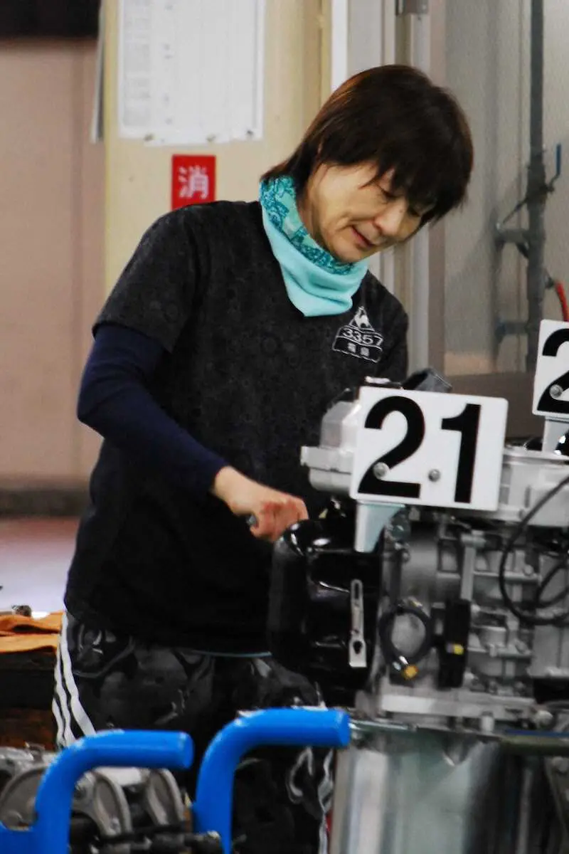 【三国ボート G3オールレディース】福島陽子 好展示タイムもレース後は整備室で入念に調整