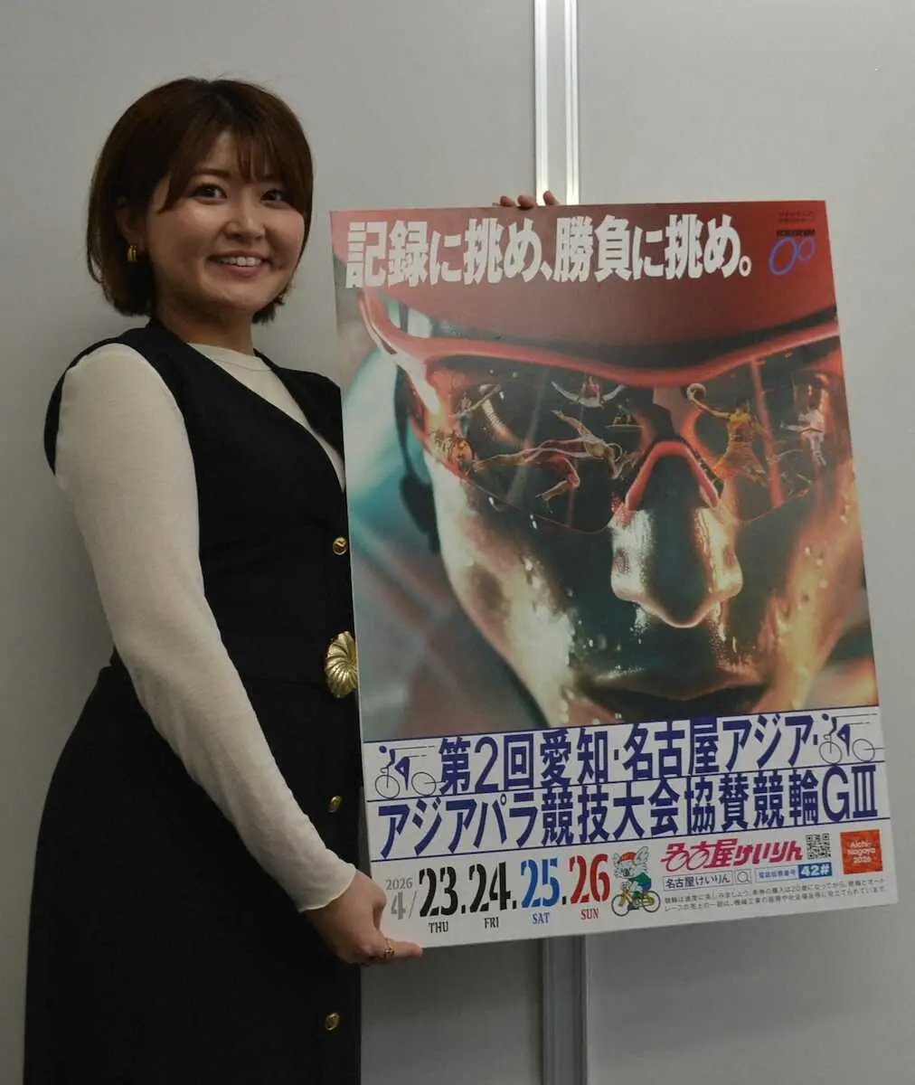 名古屋競輪のPR隊が14日、スポニチ名古屋オフィスを訪れ、23日から26日まで行われる「G3第2回愛知・名古屋アジア・アジアパラ競技大会協賛競輪」をアピールした。