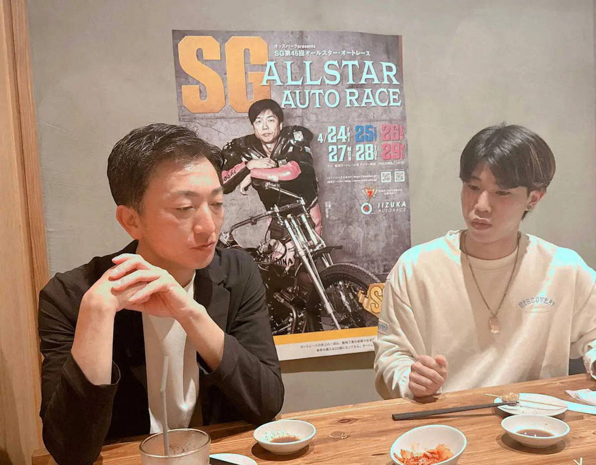 もちろん、地元レーサーたちも黙っていない。そこで直前特別企画として、圧倒的地元エース荒尾聡(44)と、飯塚オートの次代を担う気鋭で今年G1・3Vを誇る長田稚也(25)の豪華対談をお届けする。オートレースに対する思いをぶつけ合った。