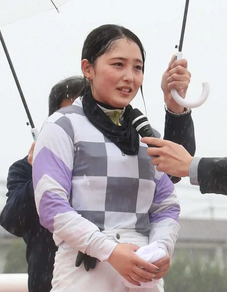この日は大雨に見舞われ、通常なら悪天候時に勝利騎手インタビューは行われないが、2年ぶりということでレースを実況した木村寿伸アナウンサーが機転を利かせ、本人の了承を得て実現した。ヒロインは「今日は前残りが多かったので、前の方に行って残ればいいなと思って乗っていました」と喜びの一言。前日には11番人気馬、10番人気馬を勝利に導くなど、今年はここまで昨年の27勝に迫る24勝を積み重ね、4月中に早くも並ぶ可能性が出てきた。「このまま順調に勝ち星を挙げたいと思います。雨の中、来てくれてありがとうございます。これからも応援よろしくお願いします」とファンに呼びかけていた。
