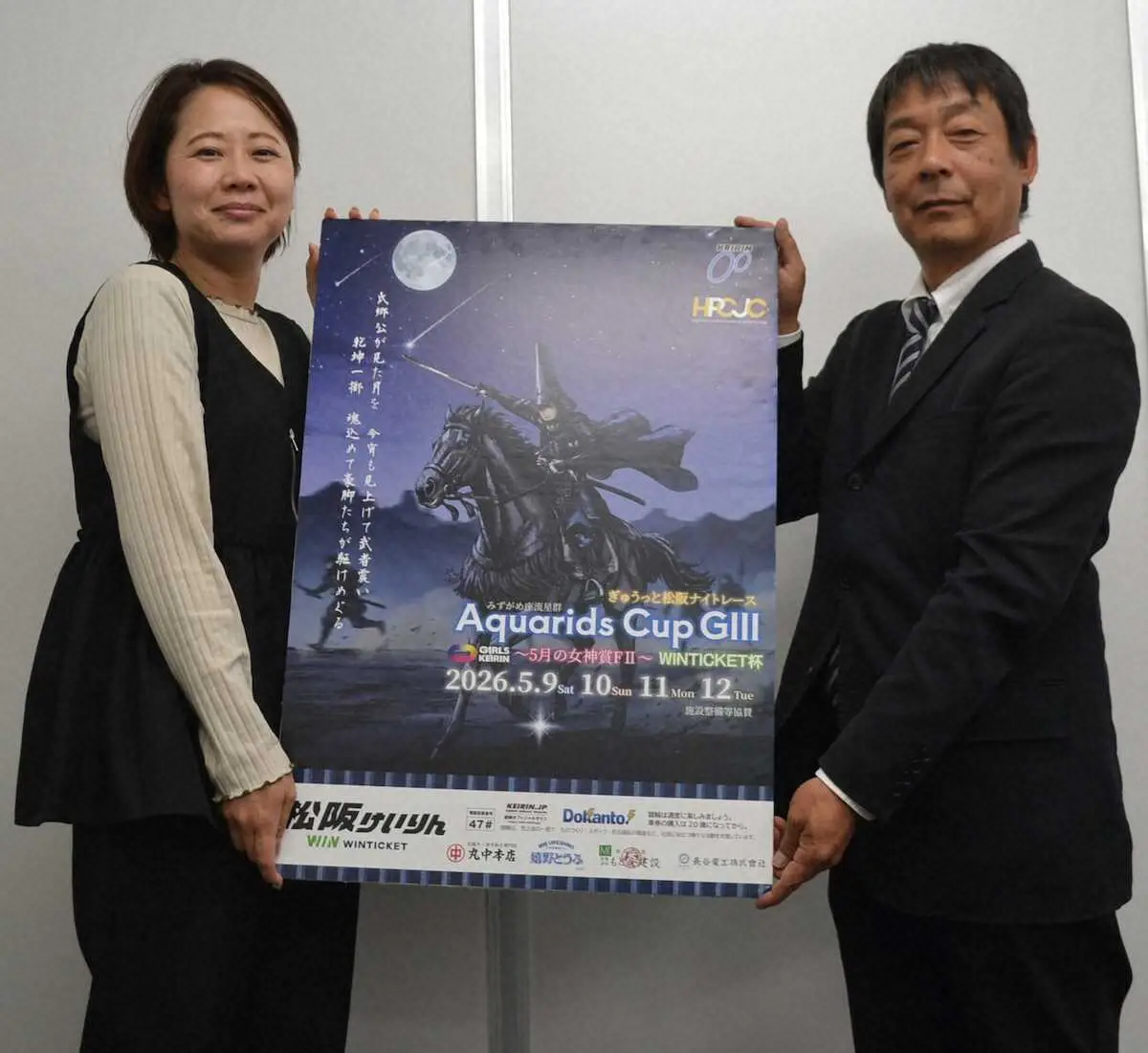 松阪競輪のPR隊が28日、スポニチ名古屋オフィスを訪れ、5月9日から12日まで行われる「アクアリッズカップG3ナイター」をあぴーるした。