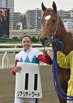 “美しすぎる女性騎手”ミシェル 仏で初騎乗初勝利の坂井を祝福!日本語で「おめでとうございます」