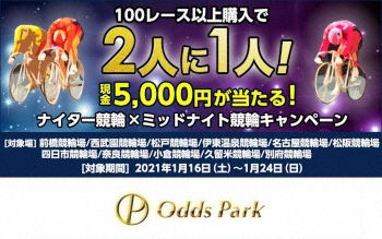 2人に1人現金5000円が当たる!オッズパーク「ナイター競輪×ミッドナイト競輪キャンペーン」実施中