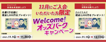 2人に1人に現金3000円が当たる!「Welcome!オッズパークキャンペーン」実施中!