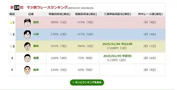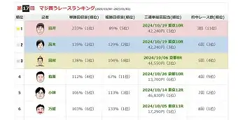 「マジ買う!」的中が大漁!上位10人が単勝回収率100%越え