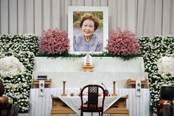 海老名香葉子さんお別れの式 祭壇にはピンクと白の花 明石家さんま、吉永小百合らから供花届く