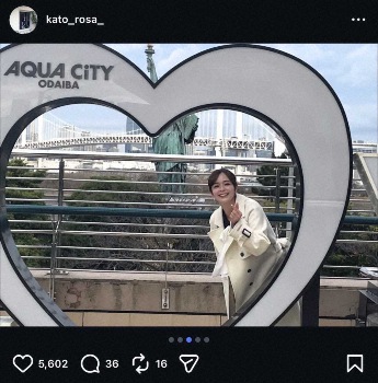 加藤ローサ 出演中テレ東ドラマの“お台場”オフショット!人気タレントとの2Sも 「素敵な笑顔」の声