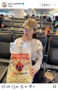 後藤真希 「デカい!」「すご笑笑」巨大すぎるポップコーン抱えてキュートな姿「美味しそう」の声も