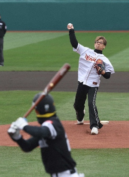 人気声優・山寺宏一「初の聖地」地元宮城で始球式 “マエケン体操効果”でストライク投球!