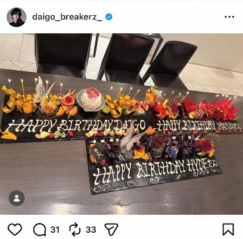 DAIGO 「神と兄貴」とのバースデーパーティーS公開「48歳もがんばりますうぃっしゅ」