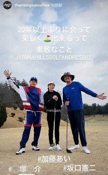 坂口憲二 窪塚洋介&加藤あいと「20年以上ぶりに会って」ゴルフ姿披露 懐かしポーズに爆笑も
