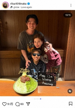 「とっても素敵」仲里依紗、13回目の結婚記念日での夫・中尾明慶、中1長男との仲良し家族ショット披露