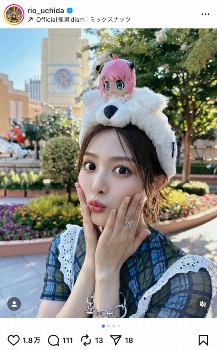 内田理央 大人気アニメキャラが頭の上に…!USJでのカチューシャ姿に「世界一可愛い」「美しすぎ」の声
