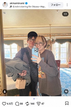 タレントの南明奈(36)が18日、自身のインスタグラムを更新し、お笑いコンビ「よゐこ」濱口優(54)との夫婦ショットを公開した。 「夫婦でロケ」と…