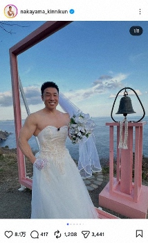 なかやまきんに君 純白の「素敵なドレス」姿に大反響「ムキムキすぎる」「ちょっと似合ってる」
