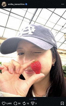 川島海荷「甘くて美味しかったぁ」 いちご狩りSにネット反響!「可愛すぎる!」「たくさん食べれた?」
