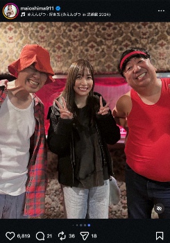 元AKB48メンバーでタレント・大島麻衣(38)が14日までに自身のインスタグラムを更新。人気お笑いコンビとの3ショットを投稿した。 自身のインス…
