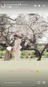 元AKB48で女優の篠田麻里子(40)が7日、自身のインスタグラムストーリーズを更新。長女の小学校入学を報告した。 篠田は「入学式でした あっとい…
