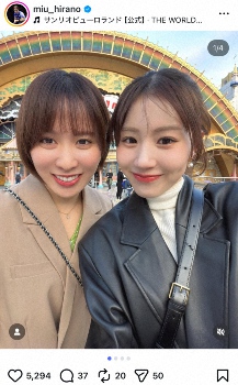 平野美宇 志田千陽と「推し増し止まらない」2S 私服×着け耳姿が大反響「乃木坂みたい」「可愛すぎ」