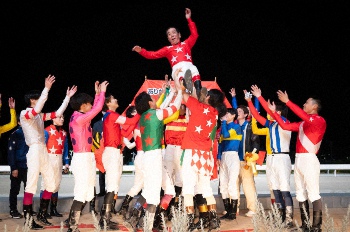 【大井競馬】的場文男騎手が大井の「帝王」賞の表彰式に登場 騎手仲間から胴上げも