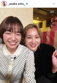 女優の瀬戸朝香(49)が2日、自身のインスタグラムを更新。仲良しのタレント・佐藤栞里(35)とのツーショットを披露した。 3日放送の日本テレビ「ヒ…