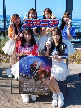 佐賀競馬場で12日に開催される「第53回佐賀記念(Jpn3)」のPRでUMATENAの6人(大原萌、有村のあ、青木ひまわり、垂水愛莉、桜衣かれん、望月…