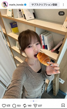 本田真凜さん 「好きな食べ物ランキング4位」にかじりつく姿披露 ファンからは「可愛い」の嵐!