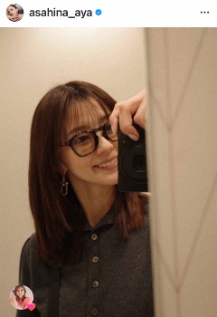 朝比奈彩「とある場所へ」 自然体なメガネ姿のプラベショットに「笑顔が綺麗」「眼鏡姿も素敵すぎ」