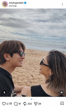 みちょぱ 南国ビーチで夫と見つめ合う素敵なショット披露「みちょぱ夫婦大好き」「今日も可愛いね」の声