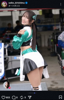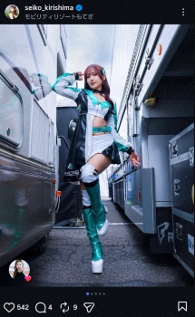 “レース界の聖子ちゃん”霧島聖子 セパレートのミニスカ・コス姿披露に「綺麗」「美しい」「素敵です」
