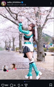 “レース界の聖子ちゃん”霧島聖子 ミニスカ・コス姿のお花見ショット披露に「最高」「素敵すぎ」