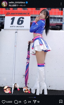 “レース界の聖子ちゃん”霧島聖子 ミニスカ・コスの見返りショット公開に「美ヒップ素敵」「綺麗」