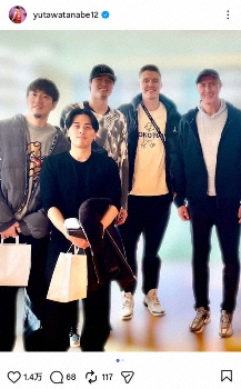 バスケットボール男子日本代表の渡辺雄太(31=千葉J)が6日、自身のインスタグラムを更新。契約解除が発表されたトム・ホーバス前監督(59)との集合写真…