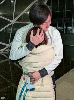 【Sスケート】新濱立也 妻・吉田夕梨花と熱い抱擁「メダルには届かなかった。ごめん」「よく頑張った」