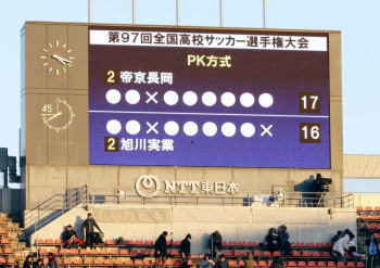 2大会ぶり6度目の出場となる新潟県代表の帝京長岡は埼玉・NACK5大宮で旭川実(北海道)と対戦。2―2でもつれこんだPK戦を史上最長の17―16で制し、6大会ぶりに16強入りした。