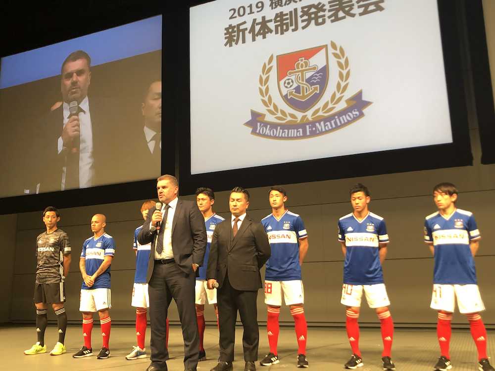 横浜の新体制発表が行われ、浦和から獲得した元日本代表FW李、川崎Fから期限付きで加入した東京五輪世代のMF三好ら新加入7選手が参加。
