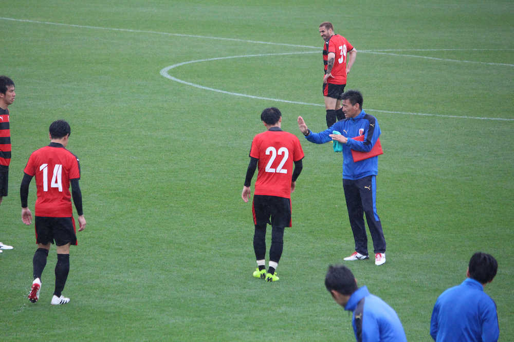 J2京都の中田監督が臨機応変な対応力を求めた。合計1―3で敗れたFC琉球との練習試合では、3―4―3システムを導入。右サイドバックが本職の石櫃を左ウイングバック、中盤の庄司をDFラインに配置するなど練習でも試していない起用をした。