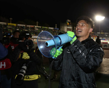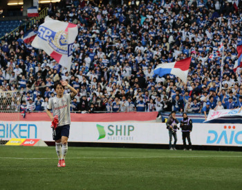 今季から10番を背負うMF天野純(27)にとって、初めて主将として臨む試合でもあった。キャプテンマークを腕に巻き、ピッチに足を踏み入れていく。「先頭で(ピッチに)入っていくのが不思議な感じだった。いつも佑二さんの後ろについて行っていたので」と見える景色が違っていた。ただ、気負いはなかった。「言葉で引っ張るタイプではないので、ピッチ上のプレーでチームを引っ張ることができたら」と話していた通り、何度も相手ゴールに迫った。昨季はサイド攻撃に偏りがちだったが、新加入の三好とのコンビネーションは抜群で中央での崩し、突破も増えた。献身的な守備は変わらず、プレスにも奔走。誰よりも汗をかき、走行距離はチームトップの12・649キロを記録した。