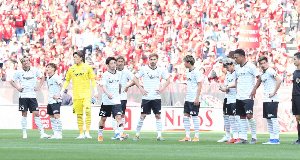 <浦和・神戸>浦和に敗れガックリの神戸イレブン(撮影・西尾 大助)