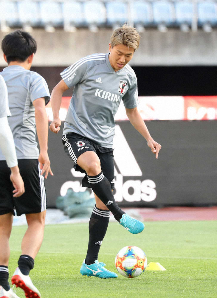 50メートル5秒8のスピードを誇り、エルサルバドル戦は1トップでの先発出場が有力視される背番号13。サニブラウンが100メートルで9秒97をマークしたことを知り「9秒台が一回出ると、こんなに早く(次の9秒台が)出ちゃうんすね」と衝撃を受けた。新たな刺激?を胸に、その持ち味をピッチで最大限に発揮する。