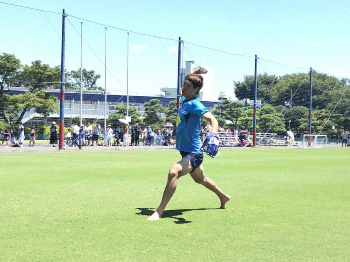 FC東京・東 7日、神宮で始球式、灼熱のグラウンドで投球練習「バシッと真ん中に投げる」
