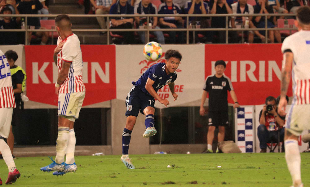 森保一監督(51)率いるサッカー日本代表は5日、茨城・カシマスタジアムで行われた国際親善試合でパラグアイ代表と対戦し、FW大迫勇也(29=ブレーメン)、MF南野拓実(24=ザルツブルク)のゴールで2―0で勝利。後半開始から出場したMF久保建英(18=マジョルカ)はA代表最年少ゴールはお預けとなったが、積極的なプレーで沸かせた。