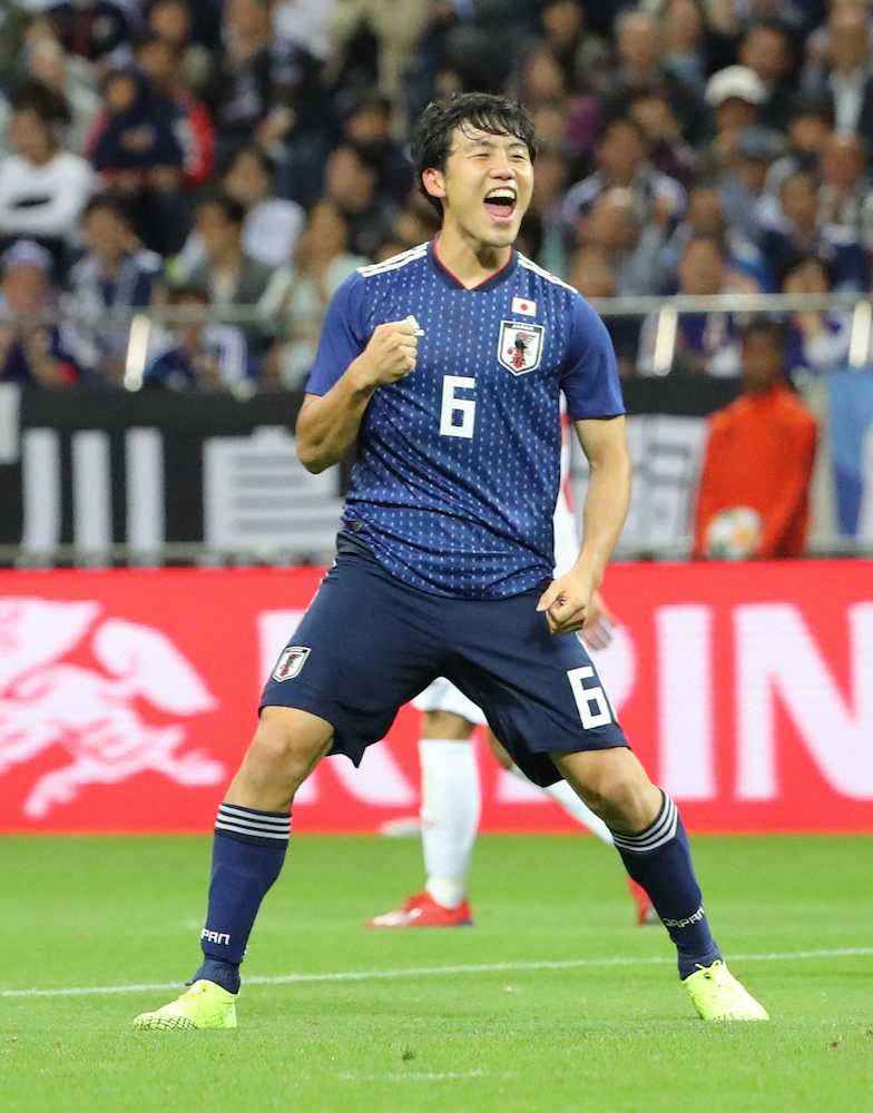 国際Aマッチ21試合目で代表初ゴールを挙げた。後半11分、中島の左CKを頭で合わせてゴール。酒井の顔面に当たったようにも見えたが「ずっと“取りたい、取りたい”と言っていたので取れて良かった」と安堵(あんど)の表情だった。